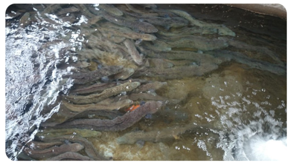 環境的規劃中我們改變了以往的傳統養殖方法,利用養殖面積的3分之一,用來作為生態蓄水池。池中我們飼養了許多生態中常見的淡水藻蝦,泰國蝦,大肚魚及淡水的螺類,用來過濾養殖無毒鱸鰻的水源,以達到大自然生態循環的慨念。微生物技術控制水中及環境中有害的細菌與病毒,讓大尾鱸鰻生活在最天然的生態環境中。